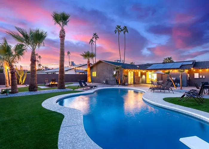 Podrás llegar al aeropuerto Internacional de Phoenix-Sky Harbor en 19 minutos en coche, y hay atracciones naturales como el Parque Acuático Big Surf a unos 10 minutos en coche. El Parque Chaparral se ubica a 3 km de la villa y el Centro Histórico de Scottsdale está a unos 3,1 km. La Villa The Greyston Retreat On Osborn ofrece a los entusiastas del deporte la posibilidad de descubrir el Estadio de Scottsdale, situado a unos 15 minutos en coche.